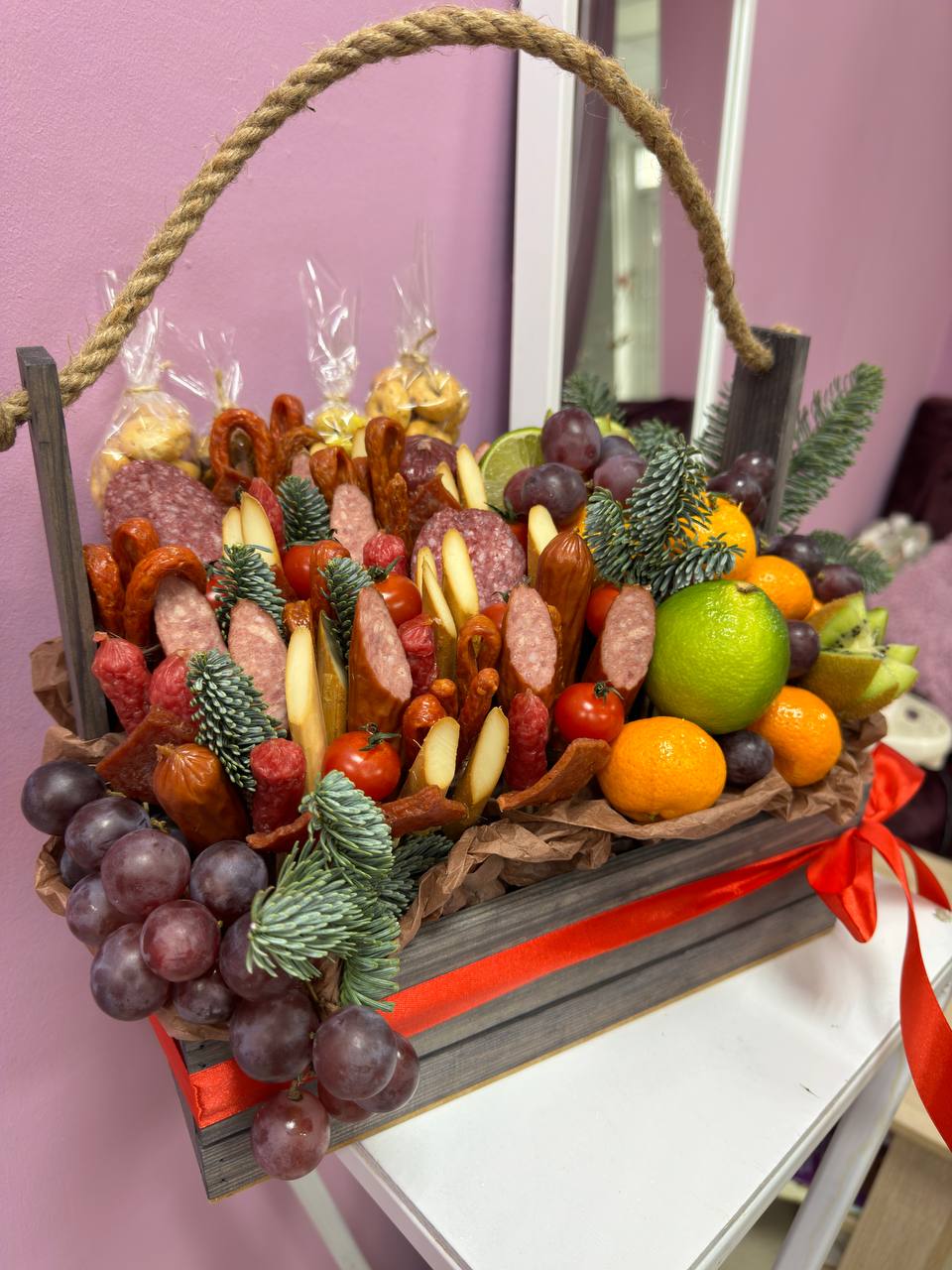 Мясные ароматные букет из копченостей, сыра, орешков и зелени. Собираются под ваш запрос и день в день. Возможно добавить напиток по вкусу.Букеты от 900 рублей и выше.